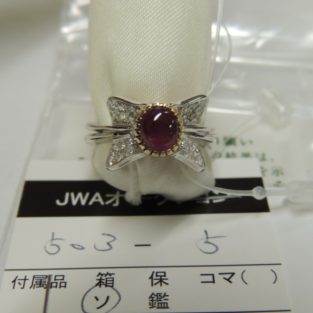 リング ルビー ダイヤ K18/Pt900 7.40g 中ソ 石目:R1.001 D0.25