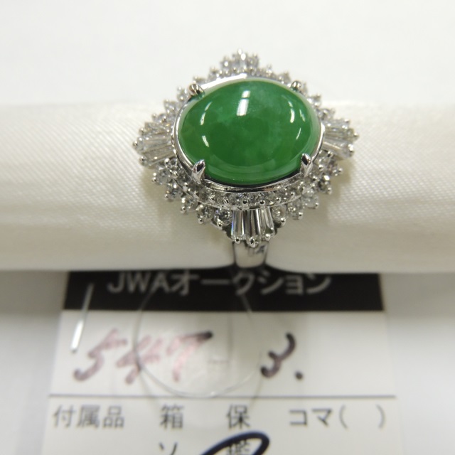 リング ヒスイ ダイヤ Pt900 12.20g 鑑 石目:J6.42 D1.35