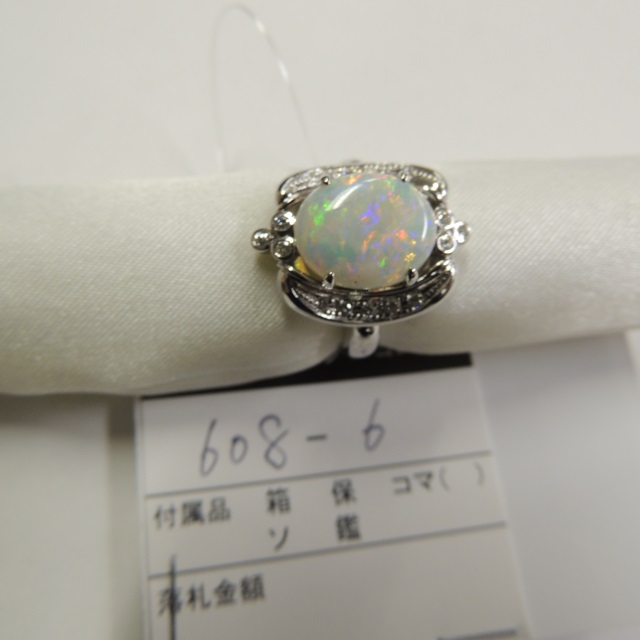 リング ホワイトオパール ダイヤ Pt900 11.60g 石目:2.65 D0.18