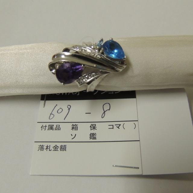 リング ダイヤ アメジスト ブルートパーズ Pt900 11.10g 石目:D0.12 1.74 0.10 1.01