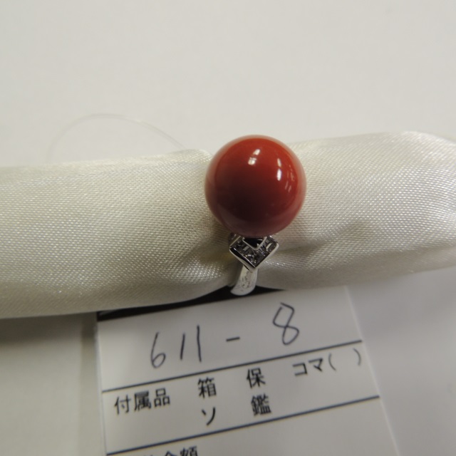 リング 本サンゴ14 ダイヤ Pm900 9.10g