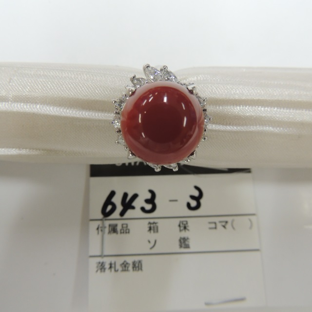 リング サンゴ14.5mm ダイヤ PT900 12.60g 石目:D0.03