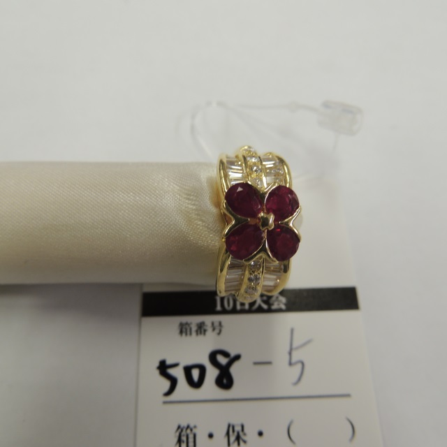 リング ルビー ダイヤ K18YG 15.40g 石目:7.27 0.96