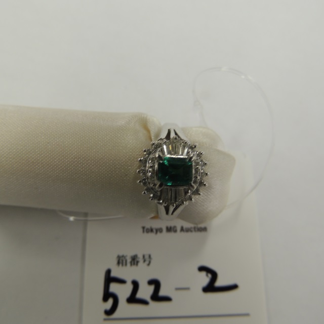リング エメラルド ダイヤ Pt900 6.50g 中ソ 石目:E1.55 D0.39