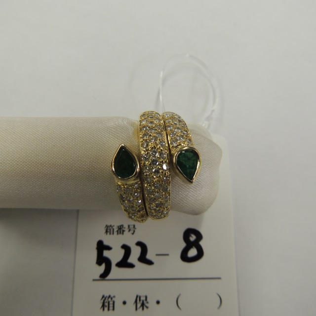 リング エメラルド ダイヤ E0.59 D0.73 メレ1PS落 K18 9.60g