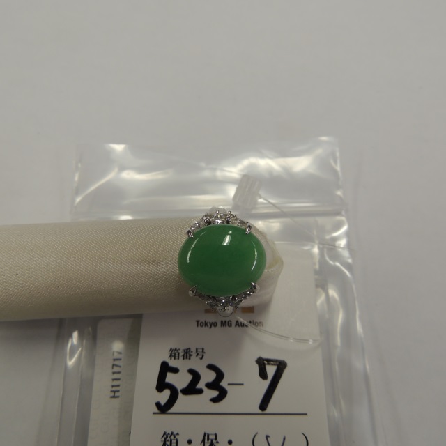 リング ヒスイ ダイヤ Pt900 9.10g 中ソ 石目:J5.94 D0.37