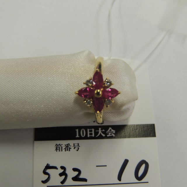 リング ルビー ダイヤ K18 8.00g 石目:R1.05 R0.6 D0.98