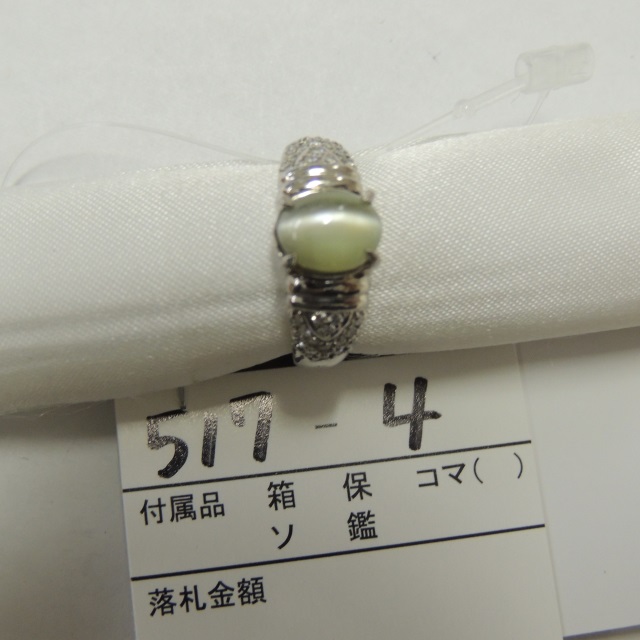 リング クリソベリルキャッツアイ Pt900 9.30g 石目:2.74 D0.22