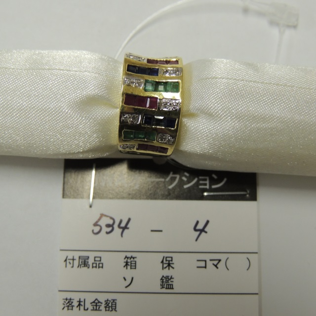 リング ルビー サファイア エメラルド ダイヤ K18 8.60g 石目:0.72 0.67 0.54 0.18
