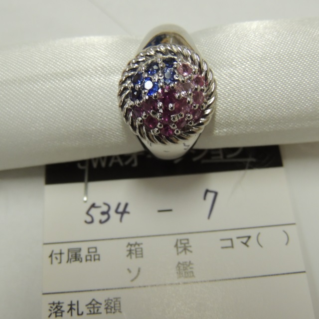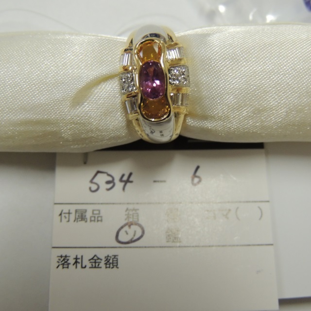 リング パープル サファイア ゴールデンサファイア ダイヤ 変化 18K/Pt900 6.90g GRJソ2 石目:PS0.74 GS0.85 D0.43