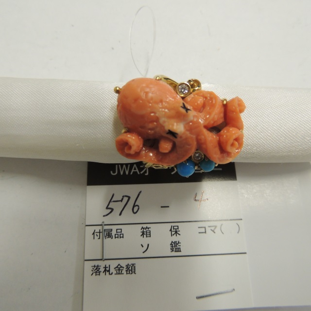 リング サンゴ ダイヤ 蛸モチーフ K18 10.90g