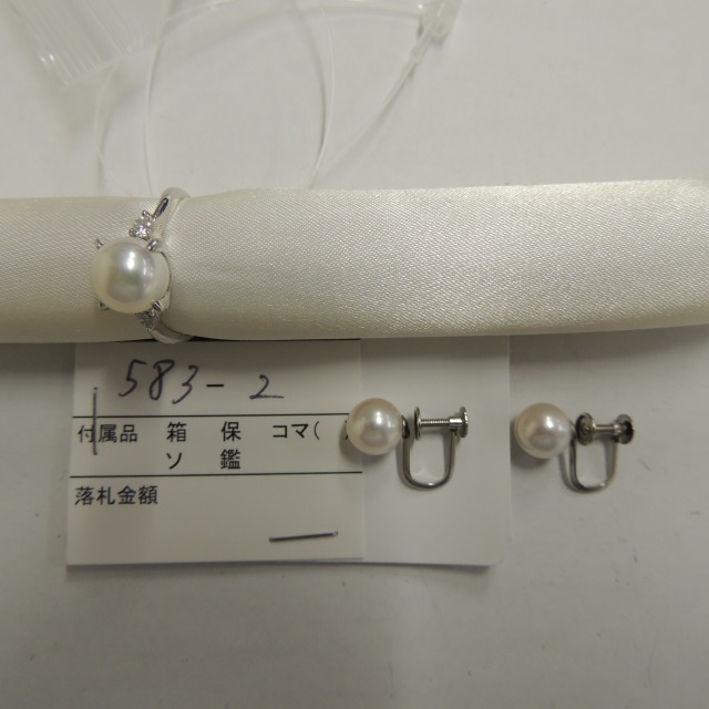 リング イヤリング パール 2点 Pt900/Pt850 7.30g 石目:D0.12