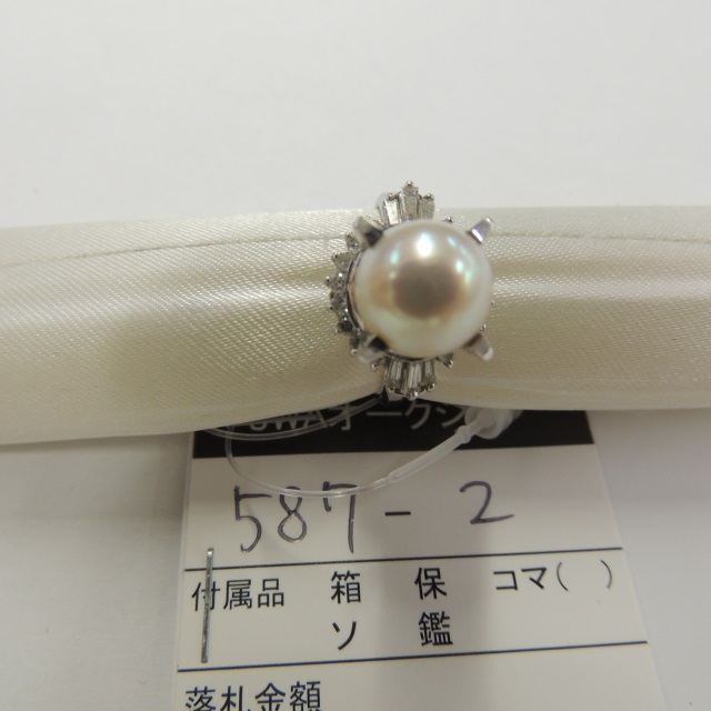 リング 真珠 Pt900 7.60g 石目:D0.15