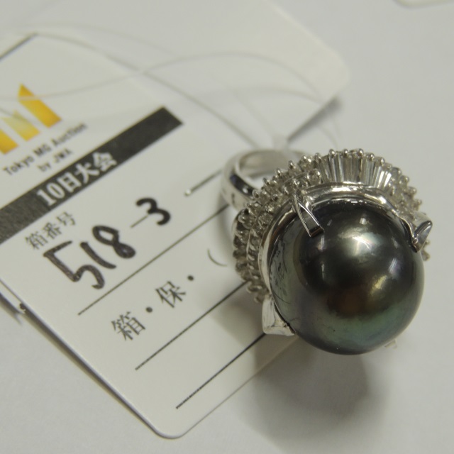 リング ブラックパール ダイヤ Pt900 25.20g 鑑 石目:BP16.5mmD1.25