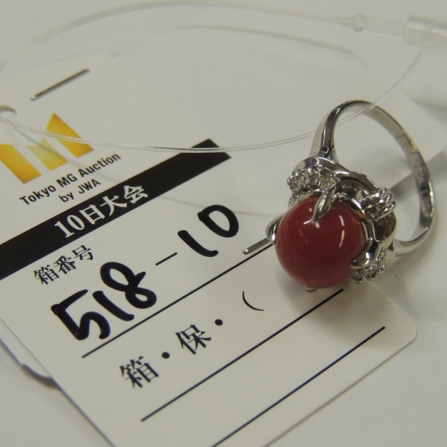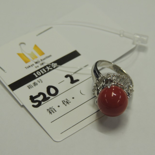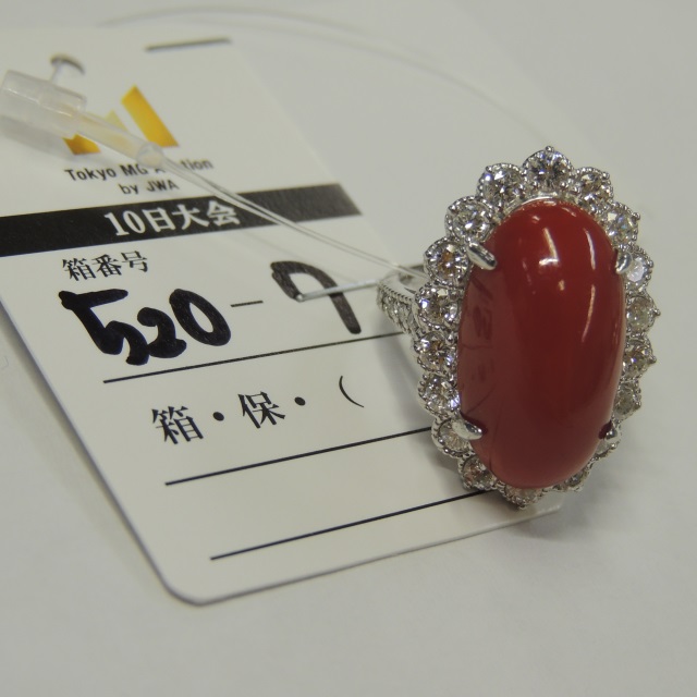 リング サンゴ ダイヤ Pt900 6.90g