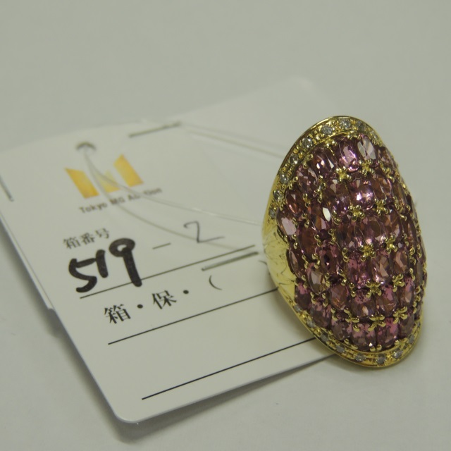 リング ピンク石 ダイヤ K18 17.10g 石目:10.23 D0.48