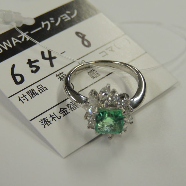 リング エメラルド ダイヤ 含浸 Pt900 8.00g 中ソ 石目:1.21 0.67