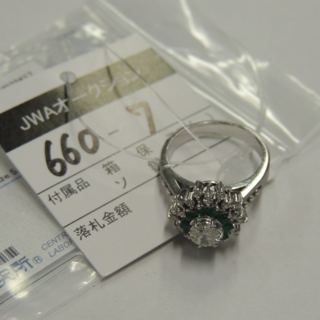リング エメラルド ダイヤ Pt900 8.20g 石目:E1.36 D1.35