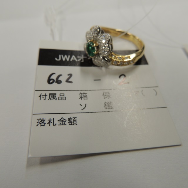 リング エメラルド ダイヤ Pt900/K18 6.20g 石目:E0.59 D0.32