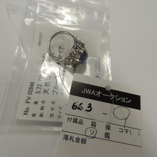 リング スターサファイア ダイヤ Pt900 7.18g 中ソ 石目:5.72 D0.29