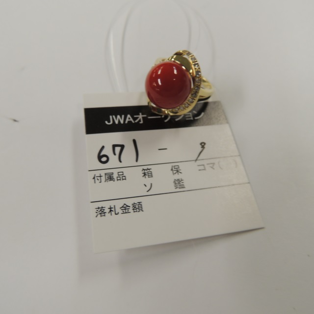 リング サンゴ11.5mm ダイヤ K18 6.60g