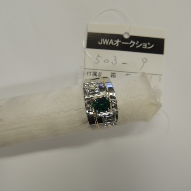 リング エメラルド ダイヤ K18/Pt900 16.60g 石目:E0.57 D0.466 D0.59 D0.16