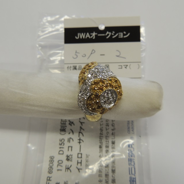 リング イエローサファイア 拡散検査未 K18 15.60g 中ソ 石目:1.70 D1.55