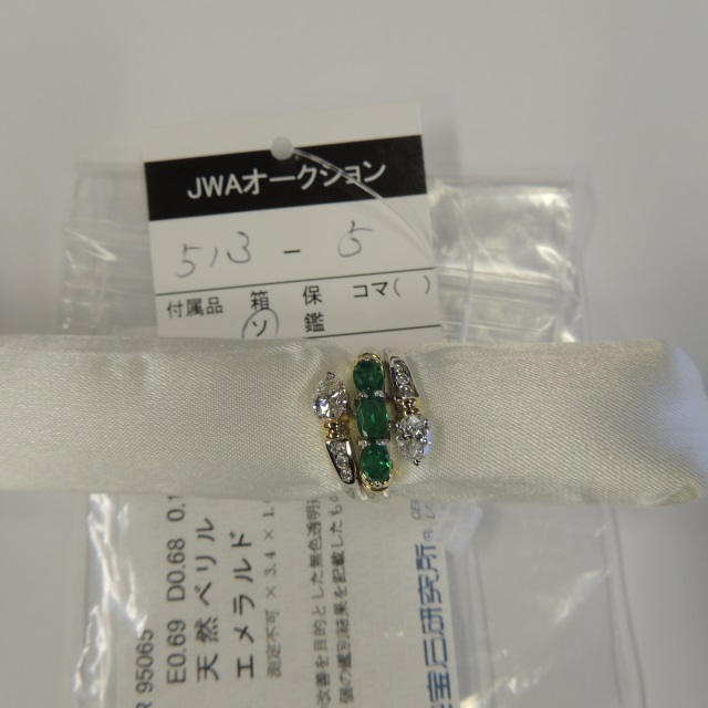 リング エメラルド ダイヤ K18/Pt900 6.30g 中ソ 石目:E0.69 D0.68 D0.10