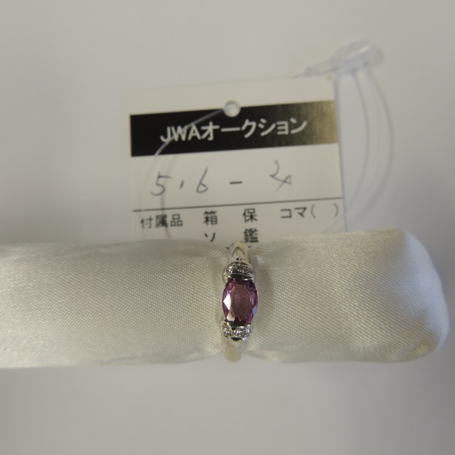リング ピンクサファイア ダイヤ K18WG 3.20g 石目:S0.75 D0.05