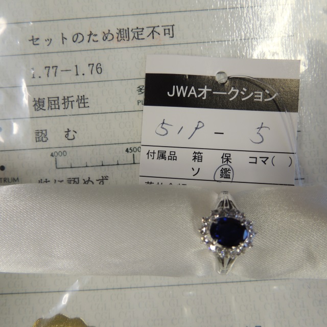 リング サファイア ダイヤ Pt900 5.40g 中鑑 石目:S0.92 D0.36