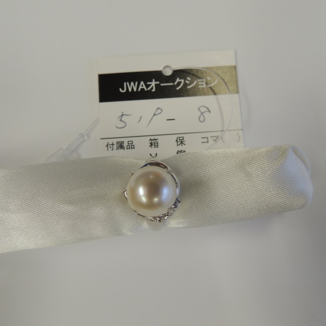 リング パール 10.5mm ダイヤ Pt900 6.40g 石目:D0.09
