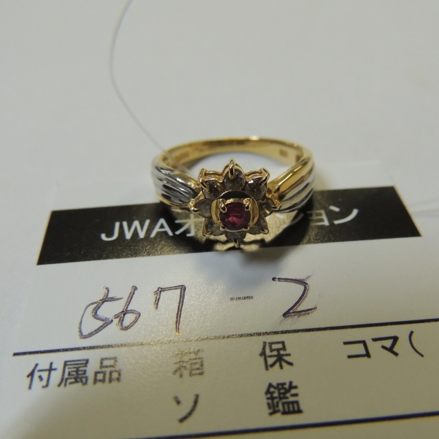 リング ダイヤ 赤石 K18/Pt900 2.30g 石目:D0.03
