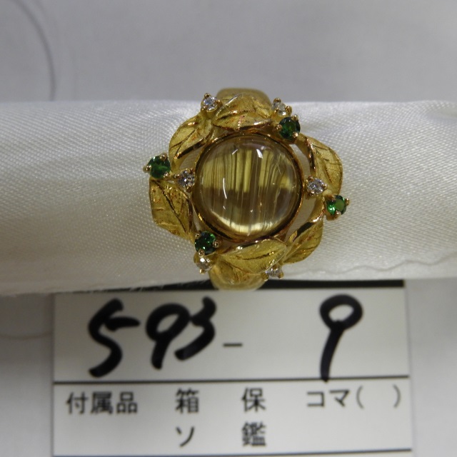 リング ルチルクォーツキャッツアイ ダイヤ K18 10.30g 鑑 石目:3.70 D0.08