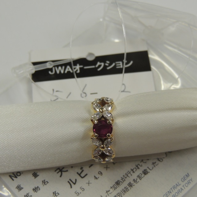 リング ルビー ダイヤ K18 9.10g GRJソ 石目:1.57 0.60