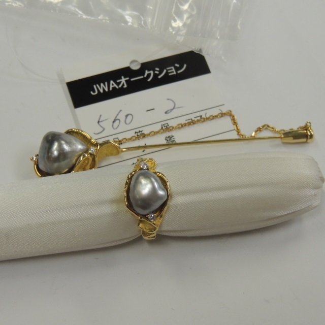 リング ブローチ 2点セット バロック真珠 ダイヤ K18 12.70g 石目:D0.05 0.04