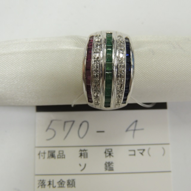 リング ダイヤ 色石 Pt900 10.80g 石目:R0.5 E0.8 S0.5 MD0.1
