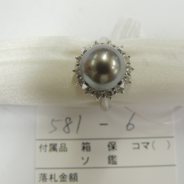 リング 黒真珠 ダイヤ Pt900 9.60g 石目:D0.659