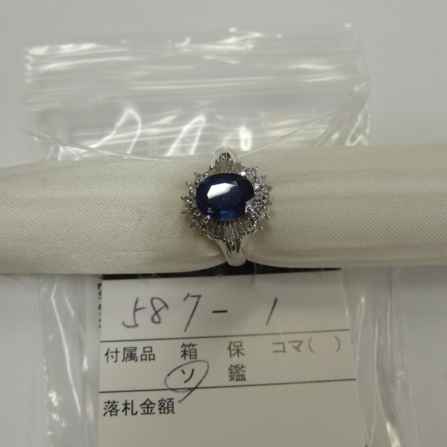 リング サファイヤ ダイヤ Pt900 6.20g 鑑 石目:1.56 0.32
