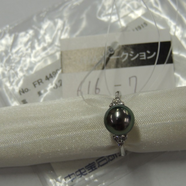 リング クロチョウパール9.3mm ダイヤ Pt900 6.50g 中ソ 石目:D0.20
