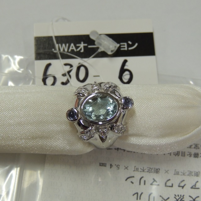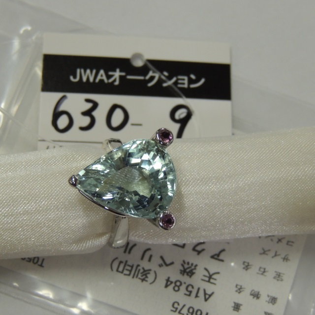 リング アクアマリン ピンク石 Pt900 12.80g 中ソ 石目:AQ15.84