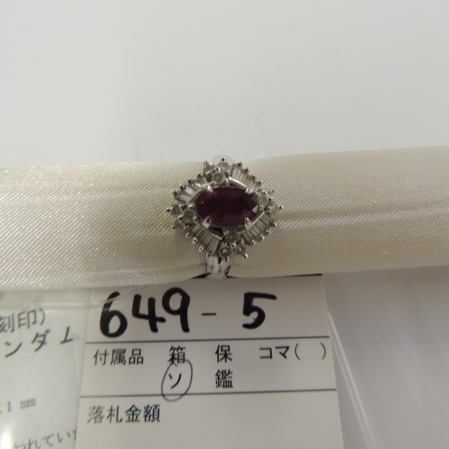 リング ルビー ダイヤ Pt900 7.60g 中ソ 石目:R1.28 D0.65