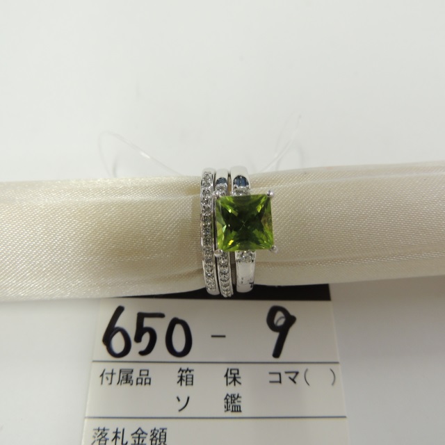 リング ペリドット ダイヤ K18WG 8.20g 石目:P1.95 D0.10 D0.09 D0.09