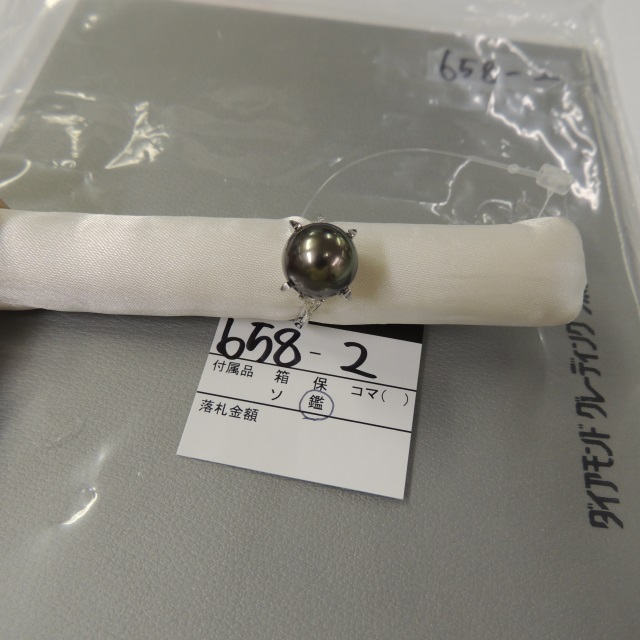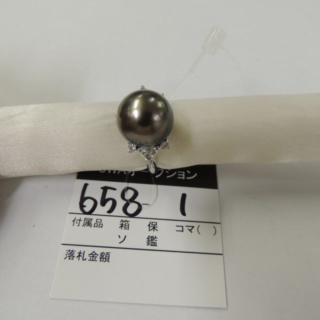 リング ブラックパール ダイヤ 12.3mm Pt900 9.80g 鑑 石目:D0.18