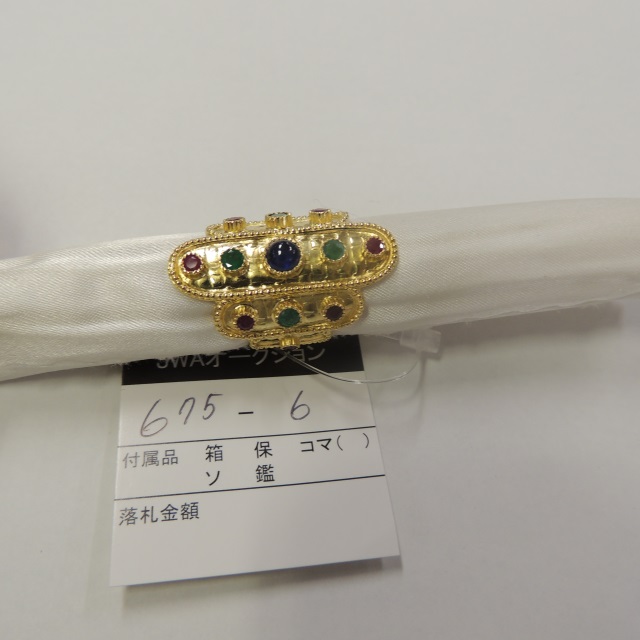リング エメラルドルビーサファイア金性見当らず K18 10.90g