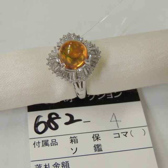 リング ファイアーオパール ダイヤ Pt900 10.70g 中ソ 石目:5.3 0.67