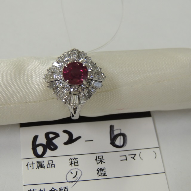 リング 非加熱ルビー ビルマ ダイヤ Pt900 8.60g GIA 石目:1.90 1.29