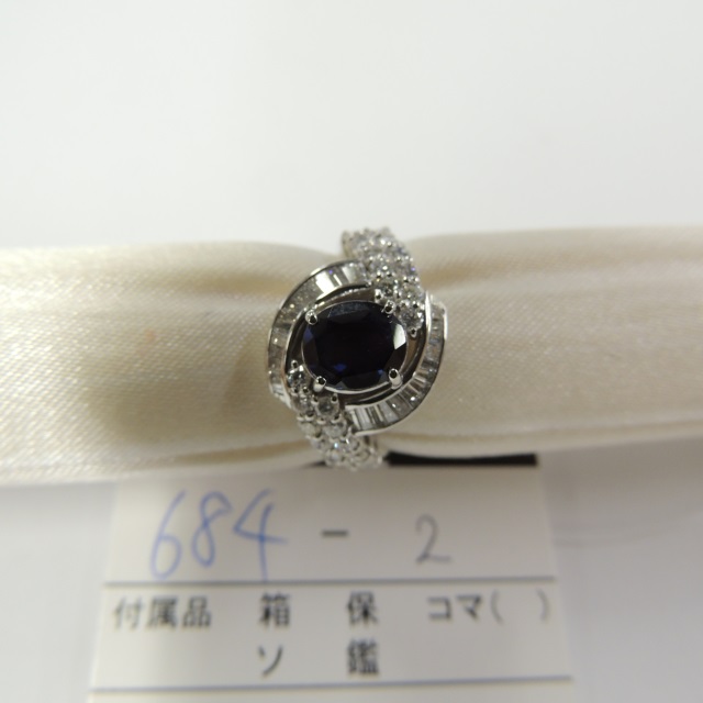 リング 非加熱サファイア ダイヤ Pt900 7.90g 石目:1.63 0.78