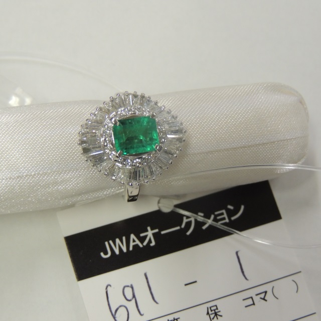 リング エメラルド ダイヤ Pt900 9.00g 中ソ 石目:E1.17 D1.37
