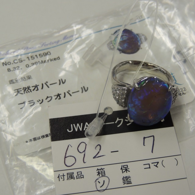 リング ブラックオパール Pt900 14.90g GRJソ 石目:D0.39 OP8.32