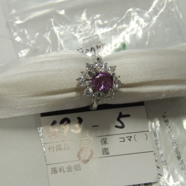 リング ピンクサファイア ダイヤ Pt900 9.20g 中ソ 石目:PSA1.643 D1.23